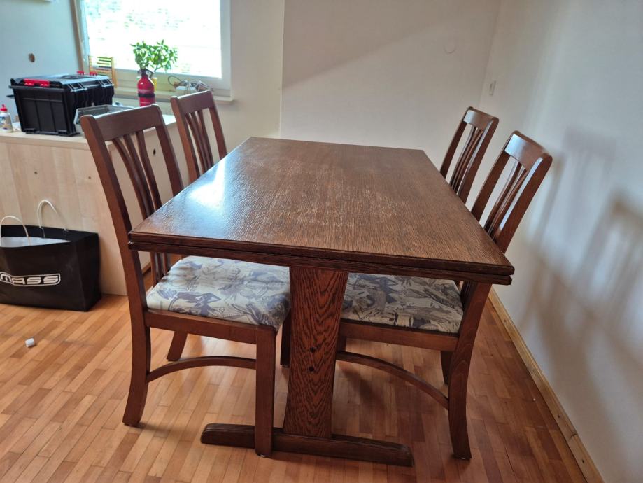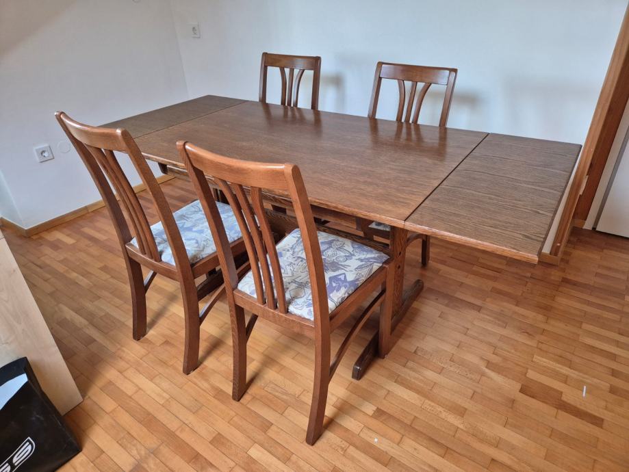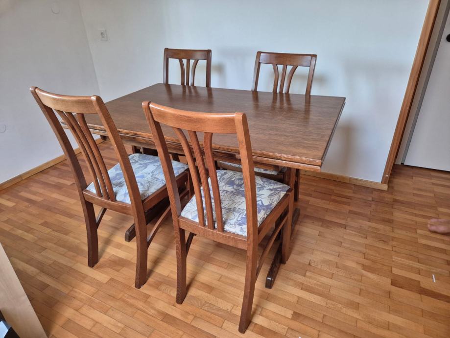 Podarim raztegljivo jedilno mizo (Dimenzije mize: 120 (150, 180) x 80) ter 6 stolov. Miza in stoli so v zelo dobrem stanju.