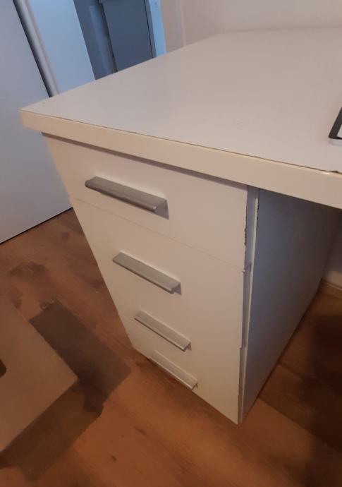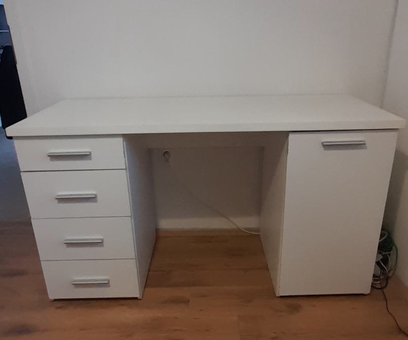 Mere pisalne mize: 138x58. Ima popraskane robove in delovno površino ( vidno na sliki). Za razstavljanje poskrbite sami.