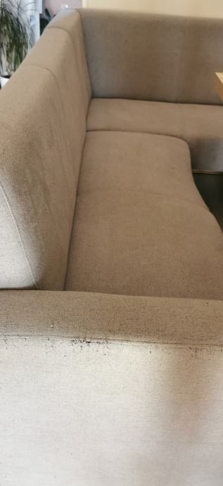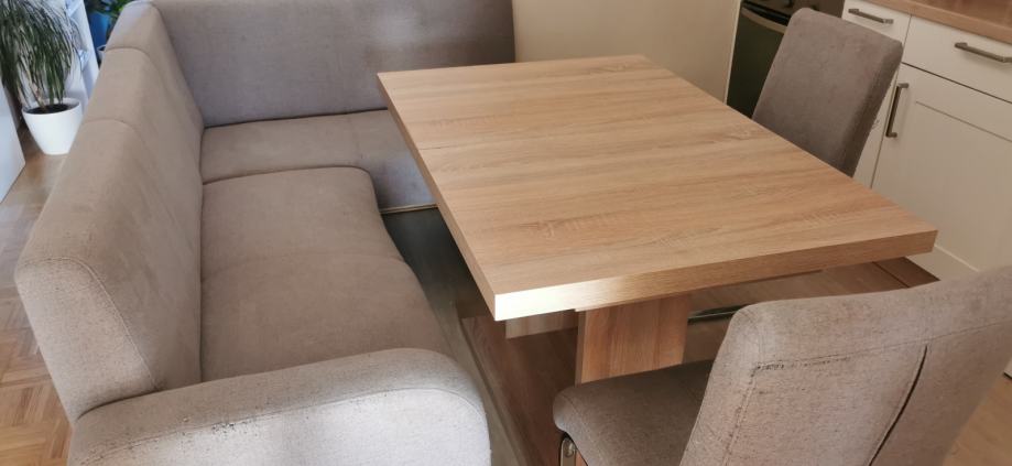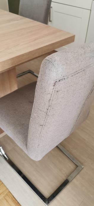 Sedežna garnitura z dvema stoloma je primerna za kuhinjo. En del je potreben popravila, tkanina je mestoma nacufana.