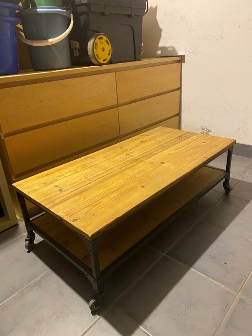 Podarim mizico dolžine 110 cm, širine 55, višine 34 cm, na koleščkih. Les (pravi les - groba ploskev, natur izgled) in kovina - industrijski look. Prevzem v Domžalah.