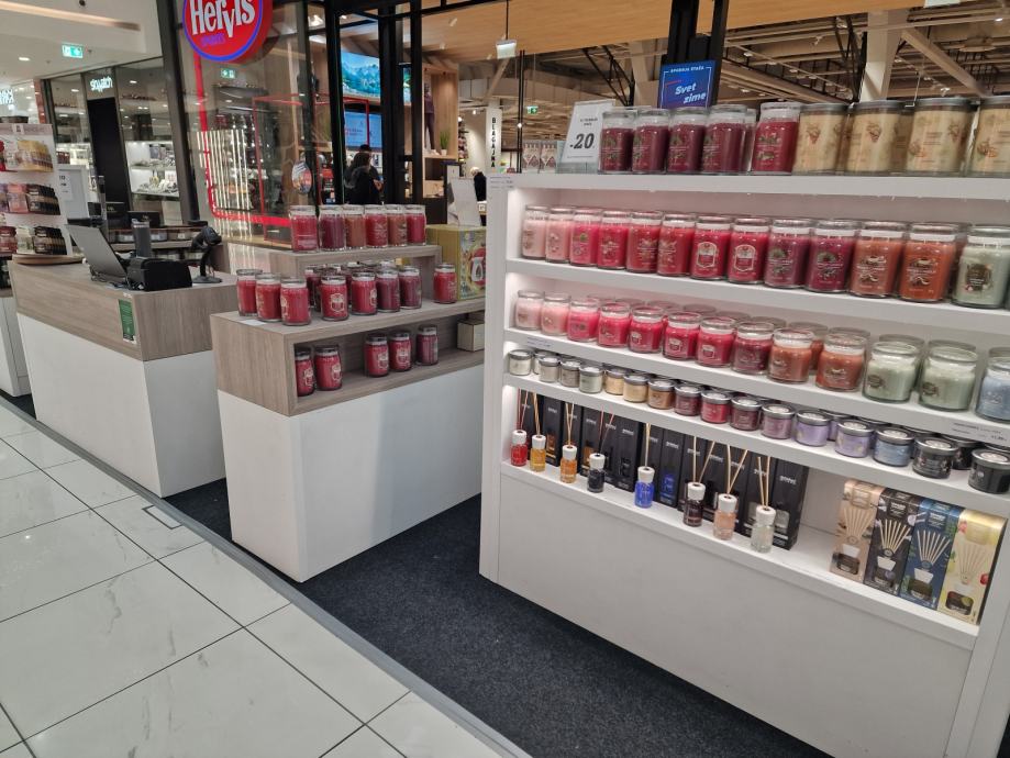 Podarim 4 omare za trgovino, ki so osvetljene in trgovski pult z blagajno.