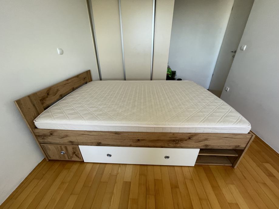 Podarim posteljo, ležišče in jogi. Postelja ima 3 vecje predale in na 4 straneh police.