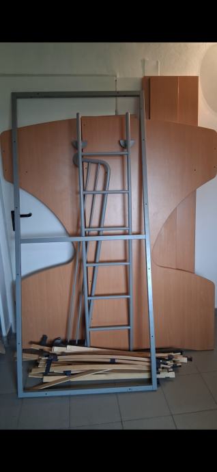 Podarim rabljeno mladinsko posteljo svetlo rjave barve. Postelja ima dimenzije ležišča 200x90cm, ki je dvignjeno od tal cca 140cm, celotna višina cca165cm. Pod posteljo je možno postaviti pisalno mizo ali nižjo omaro. Slika razstavljene postelje v prilogi. Za odvoz poskrbite sami. Kličite samo resni interesenti.