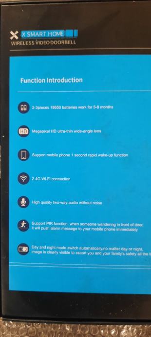 Pametni video domofon s katerim imate vedno nadzor nad dogajanjem pri vaši hiši, kjer koli se nahajate. Preko mobilne aplikacije, ki si jo naložite boste prejemali obvestila o gibanju, obisku. Video zvonec ima možnost dvostranske komunikacije, tako da se lahko z obiskovalcem pogovarjate tudi, ko Vas ni doma. Posnetki video zvonca se shranijo na vašo mobilno aplikacijo in se hranijo mesec dni. Kvaliteten, moderen, prijetnega izgleda, zmogljiv brezžični hišni zvonec s senzorjem gibanja. S pametnim telefonom lahko celo vidite in se pogovarjate z obiskovalcem ali poštarjem, dostavljalcem paketov v primeru, da vas ni doma. Pametni video zvonec ima funkcijo night vision, zato lahko spremljate gibanje tudi ponoči.
