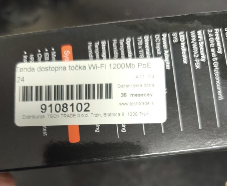 Dostopna točka WiFi Tenda Wi Fi 1200 Mb, PoE, montaža na steno ali strop. Deluje na 2,4 in 5 GHz
