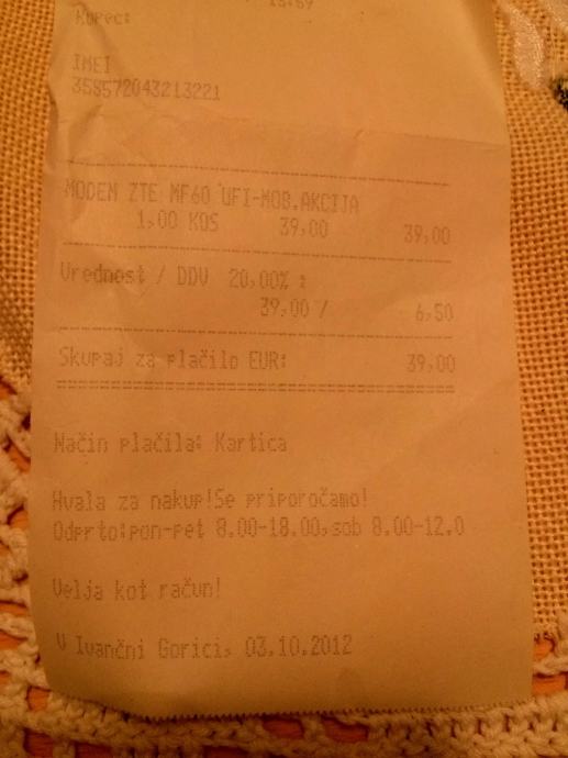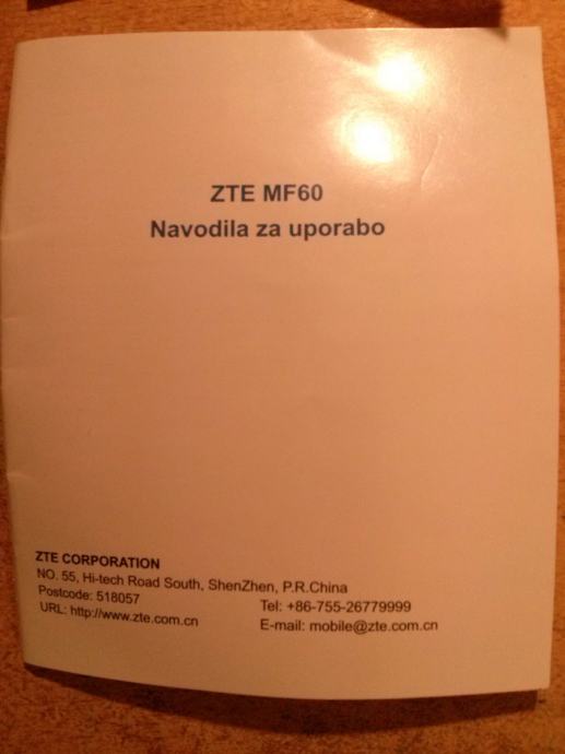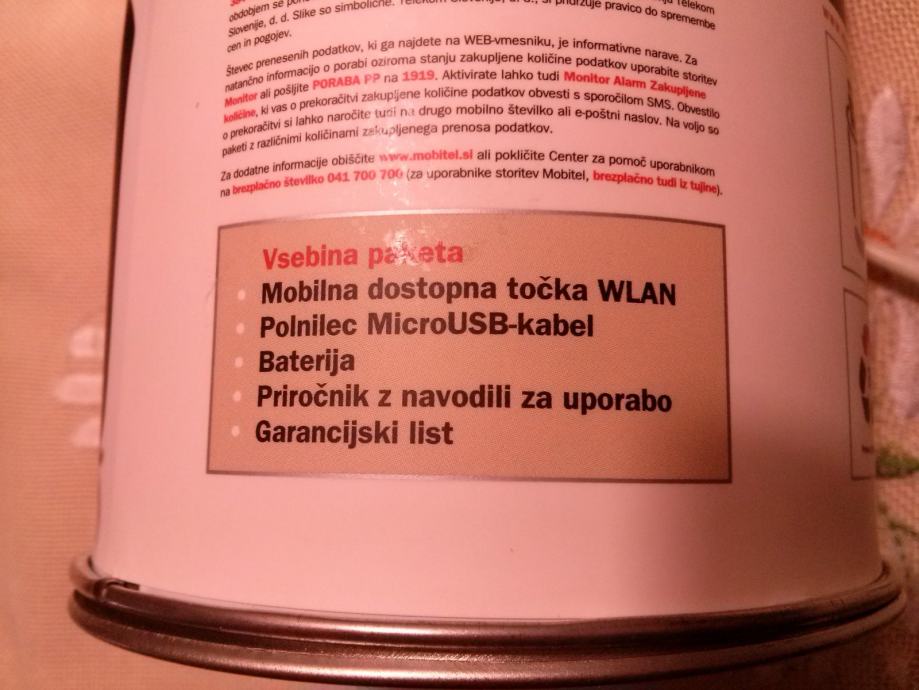 Modem,polnilec kabel,garan.list,priročnik z navodili