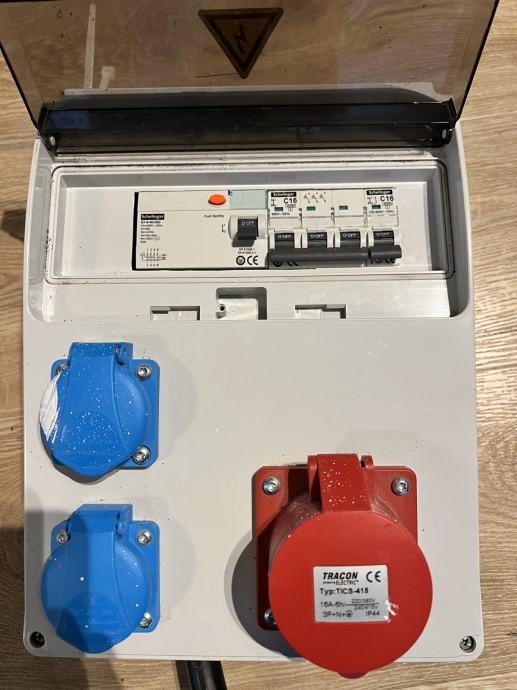 Prodam nerabljeno Gradbeno elektro omarico ,opremljeno s Fit stikalom, , avtomatskimi varovalkami in vtičnicami 2x220V in 1x 360V (trifazna)