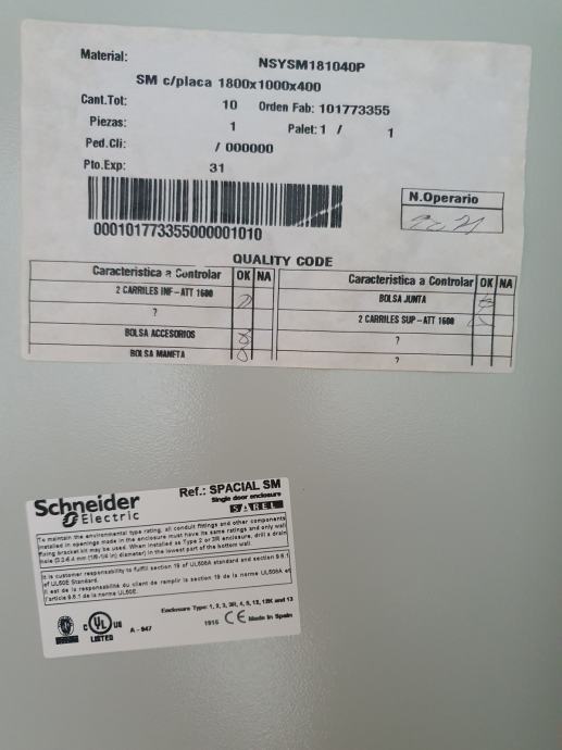 Elektro omara Schneider dimenzij 1800x1000x400.