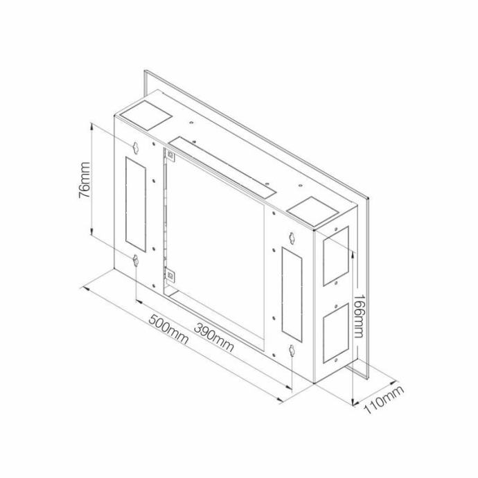 Triton kabinet serije RNA za domače LAN omrežje, namenjen vgradnji keystone modulov. Vrata kabineta imajo plastično okno za boljši prenos brezžičnega signala. Kabinet omogoča nadometno ali podometno montažo. Dimenzije znašajo 166x500x110 mm