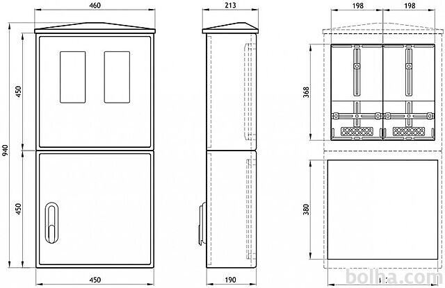Elektro omarice so namenjene za vgradnjo v zid in za namestitev na talna kabelska razvodišča v zračnem in zemeljskem omrežjuPri omaricah, ki so namenjene za nadzemna talna kabelska razvodišča, so priloženi vijaki za pritrditev s podložkami in distančnikiVratca omarice se lahko pri zidavi in montaži snamejo. Omarice se zaklepajo s cilindričnimi ključavnicami in so v sivi barviV omarici je pritrjena montažna plošča. Priloženo je ustrezno število ranžirnih obročkov in vijakov za njihovo pritrditevOdprtine v omaricah, ki so namenjene za vgraditev v zid in na zid, so zaprte z gumijastimi čepi-skoznikiNa željo kupca se lahko omarice in podstavke pobarvajo v željeno barvo po RAL lestviciOpis in navodila za montažo:- Prostostoječo omarico postavimo na podstavek ali prej pripravljen temelj- Pri postavitvi betonskega temelja ali podstavka je potrebno upoštevati minimalno razdaljo od tal do omarice, ki je 500mm- Montažer mora zagotoviti, da je zaščitni tokokrog zmožen prenesti vse termične in dinamične šoke, do katerih lahko pride na mestu postavitve- Monter mora najprej privijačiti na hrbtno stran omarice dva RF nosilca skozi prej izdelane izvrtine, nato skozi nosilca spelje RF trakova- RF trak, ki je speljan skozi nosilca, se upogne proti zadnji strani droga, pri čemer drugi monter spelje trakova v L nosilce ter ju zakrivi v nasprotno smer- L nosilce nato paroma medsebojno privijači s priloženim vijačnim kompletomTehnične lastnosti:- Priključno merilna prostostoječa omarica z dvema oknoma- Ohišje iz izolacijskega materiala, ki ustreza razredu II- Tritočkovno zapiranje + nihalna ročica- Iz trdega PVC; odporna na UV žarke- Stopnja mehanske zaščite IP44- Montažna plošča 420x380 mm- 2x števčna plošča- Barva: RAL 7035Uporaba: Elektro Primorska, Elektro Maribor, Elektro CeljeDimenzije: 460 x 940 x 213 mm Več podatkov si oglejte na tej povezavi...