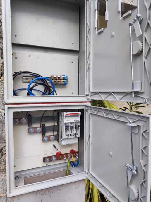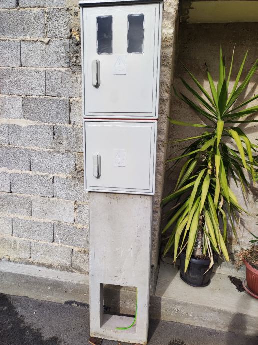 Nova komplet ožičena števna elektro omarica s betonskim podstavkom za vkop v zemljo prodam.