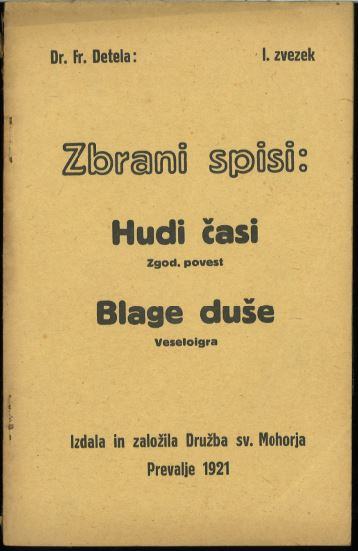Hudi časi : zgod. povest ; Blage duše : veseloigra / Fr. Detela