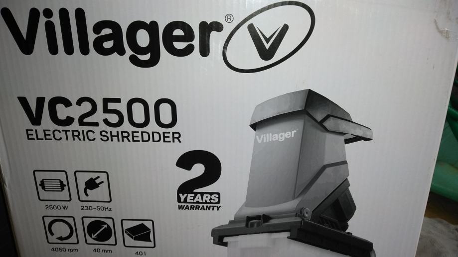 Prodam električni drobilnik za veje VILLAGER VC 2500; 2500 W/40 mm /40 L /4050 rpm