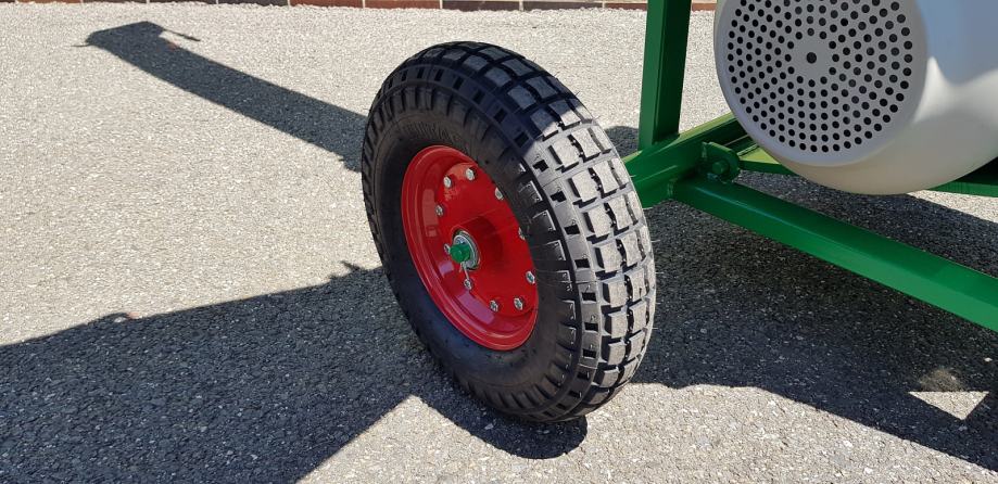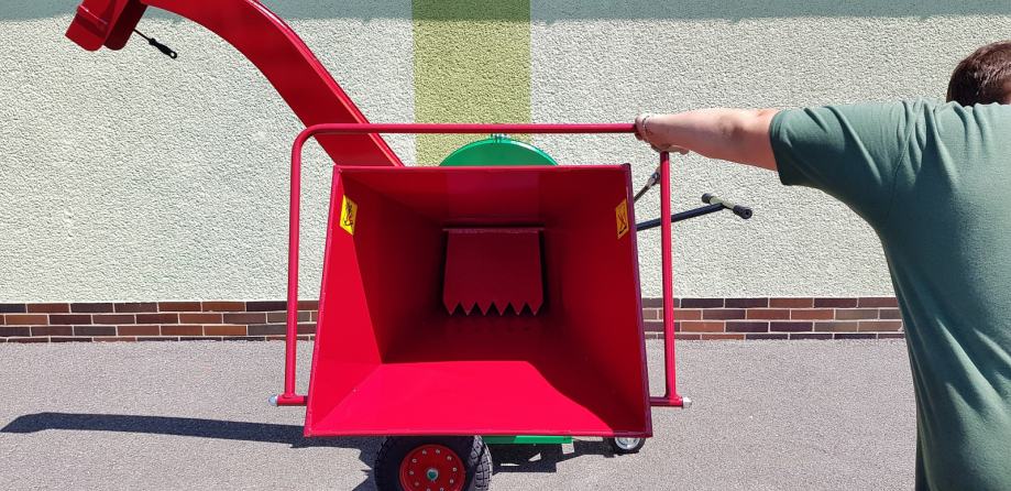 Stroj je na terenskih kolesih Ø410x100 mm in je zasnovan za ročno premikanje po površinah. Za drobljenje, se veje vstavijo v rdeč lijak in sekanci se odpihnejo na tla ali v vrečo zbiranja, ki jo je mogoče pritrditi na sekalnik.
