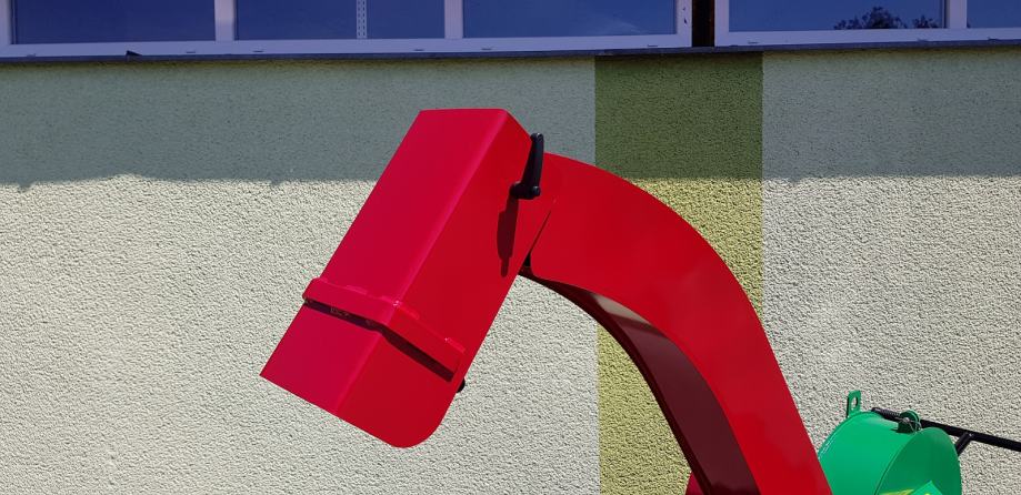 Sprejemni lijak za vstavljanje vej je opremljen z varnostno zavoro. Ko pritisnete, se zavora zatakne v vstavljeni material in sekalnik se ustavi.