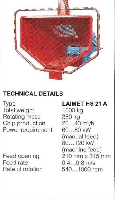 Vijačni sekalnik LAIMET HS 21 - A, za izdelavo lesnih sekancev – biomase
