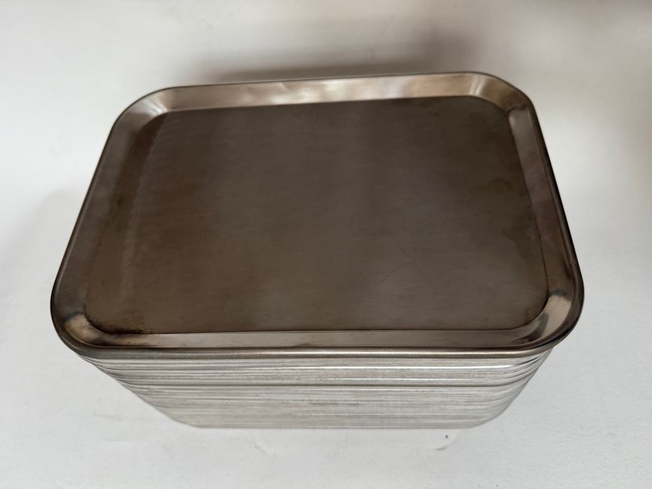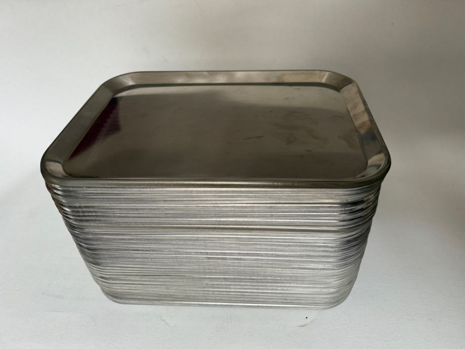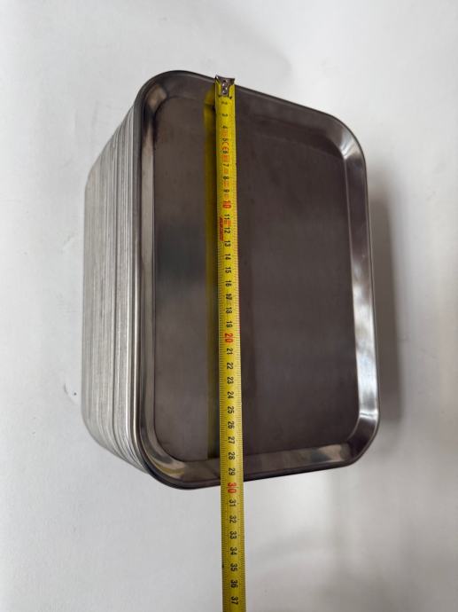 Prodam pravokotne pladnje, izdelane iz nerjavečega jekla, primerni za pomivanje v pomivalnem stroju.