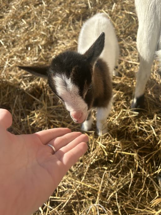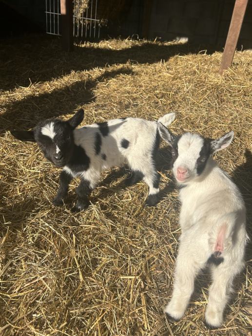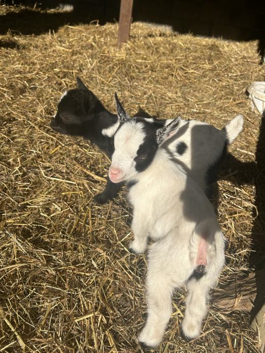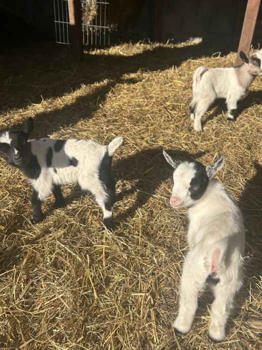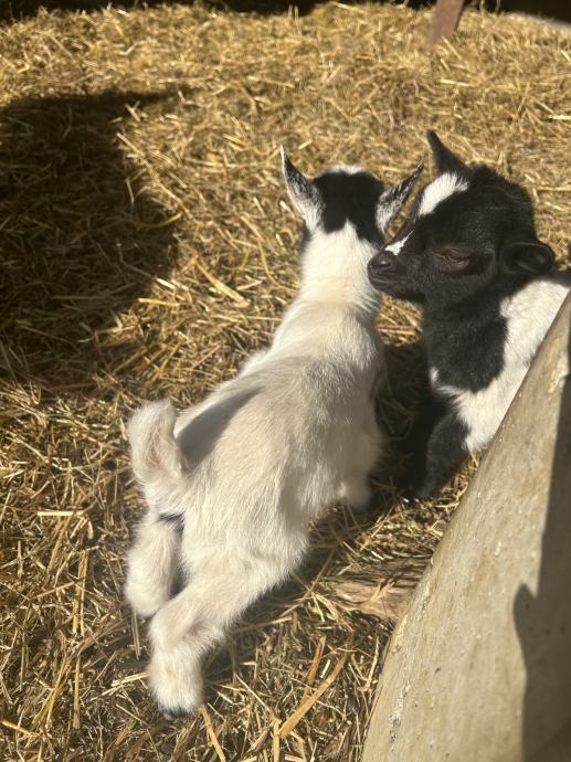 V sredini maja bodo za nov dom pripravljene mini kozice, imamo še 2 črno beli samički in rjavo belega samčka. Samčka lahko kastriramo pred odhodom v nov dom, kar je priporočljivo, če si želite pravega cartljivca, ki ne oddaja vonja in nima nagona. Želimo si da bi šli v dobre roke, to so ljubljenčki in uživajo v človeški družbi. Tudi odrasle so izredno majhne rasti. Navajene bodo električnega pastirja.