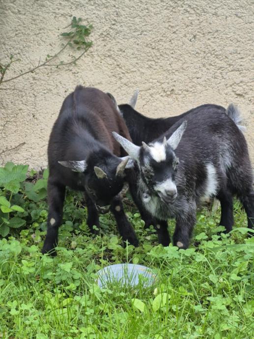 Prodam 3 pritlikave kozice - dve kozi in en kozel (kastriran). Stare so 6 mesecev. Prodam za ljubiteljsko rejo in NE za zakol. Prodajajo se skupaj, ker so zelo navezane ena na drugo. Cena 130e. Okolica Ljubljane.