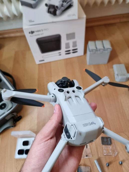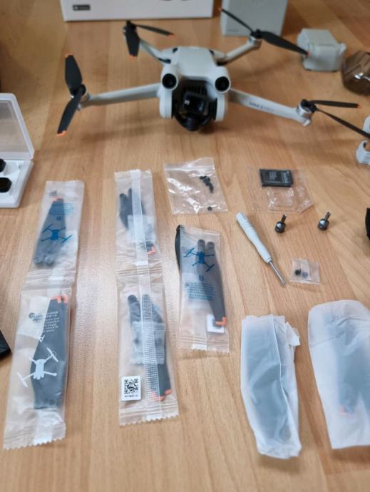 Dron je zelo dobro ohranjen in ima vsega skupaj 5 baterij. Dron, krmilnik in dodatki so popolnoma delujoči. Kontroler je bil uporabljen samo za snemanje video materiala, zato je odlično ohranjen.