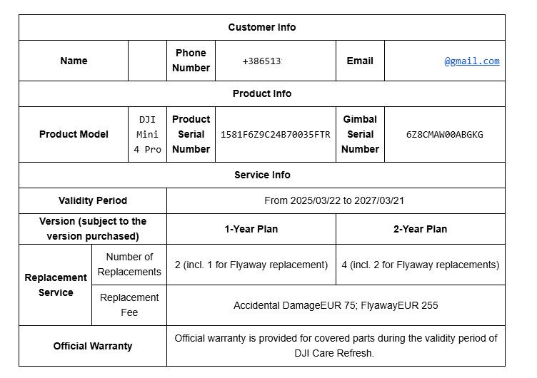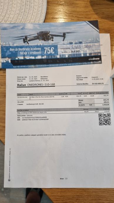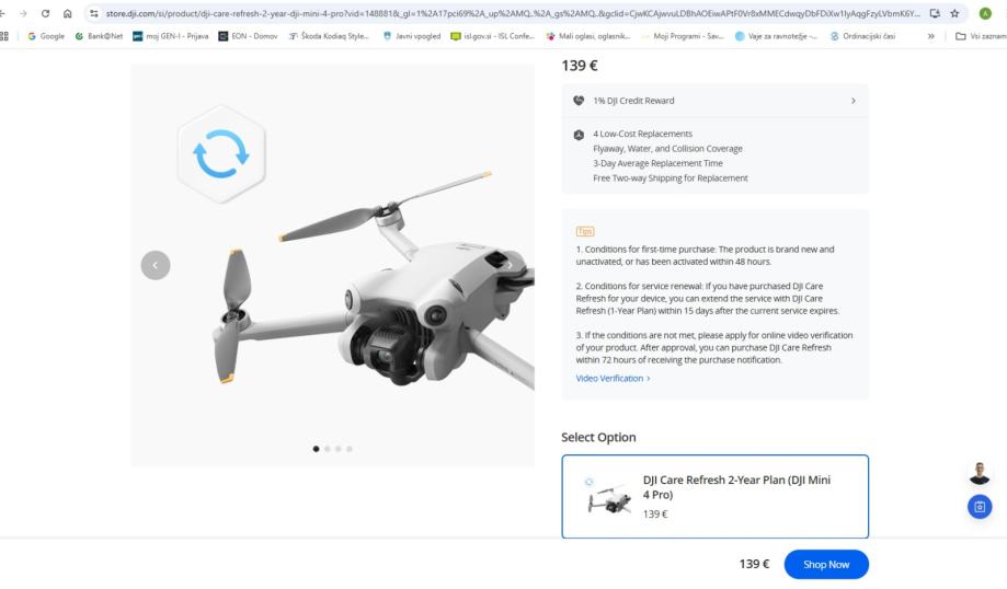 Garancija DJI Care Refresh do 21. 3. 2027 v vrednosti 139€.