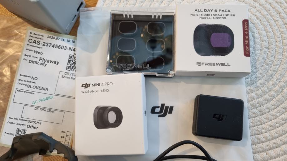 Prodam nov, zapakiran DJI Mini 4 Pro Fly More Combo. Zraven vsa oprema (glej slike), bon v vrednosti 75€ za tečaje v ONEDRONE akademiji, Freewell ND Filters Mini 4 Pro set šestih leč, nove neuporabljene (c.c.a70€), DJI širokokotni objektiv nov neuporabljen (32€).