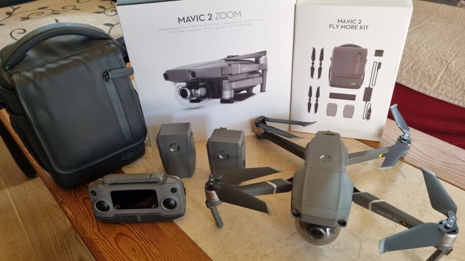 Prodam malo rabljen in zelo lepo ohranjen dron DJI Mavic 2 Zoom s paketom Fly More Combo (rezervni propelerji, 2 dodatni bateriji, polnilec za avto, polnilec za 4 baterije, torba za shranjevanje)