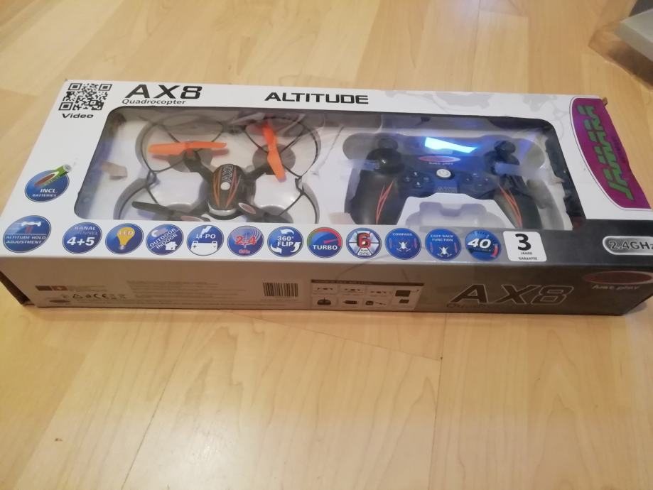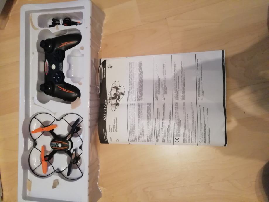 -vsebnost: quadricopter, polnilec, baterija, komanda, dva rezervna propelerja