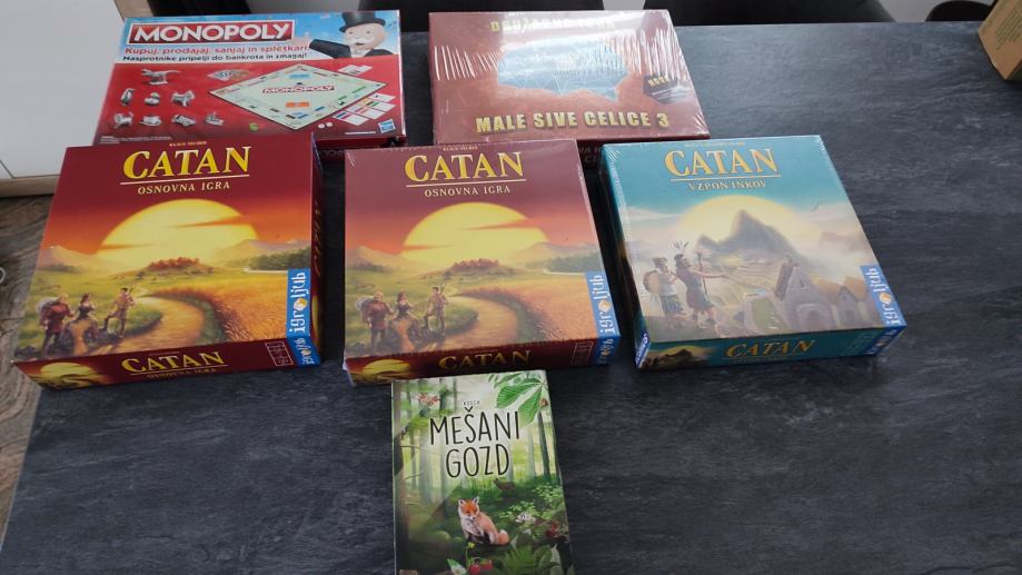 P.s.: 1x Catan Osnovna, ki je na fotografiji je že prodana, zato je cena za komplet znižana iz 180 na 150 €