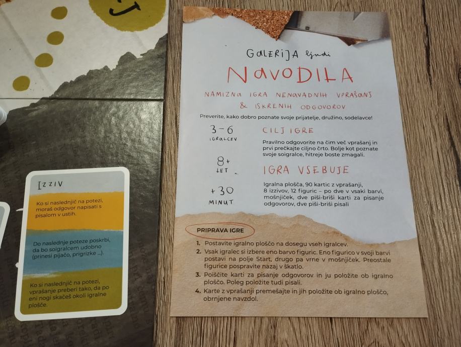 Galerija ljudi je namizna igra za 3–6 igralcev, ki na zabaven način ustvarja nove vezi med prijatelji in preko vprašanj preverja, kako dobro se v resnici poznamo med sabo.