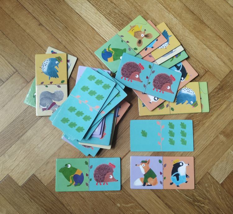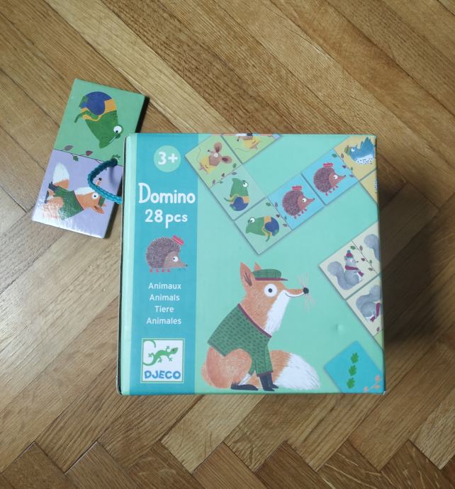 Otroške domine francoskega proizvajalca Djeco. Na eni strani so živali na drugi na rastline. Primerne tudi za najmlajše. Lepo ohranjene.