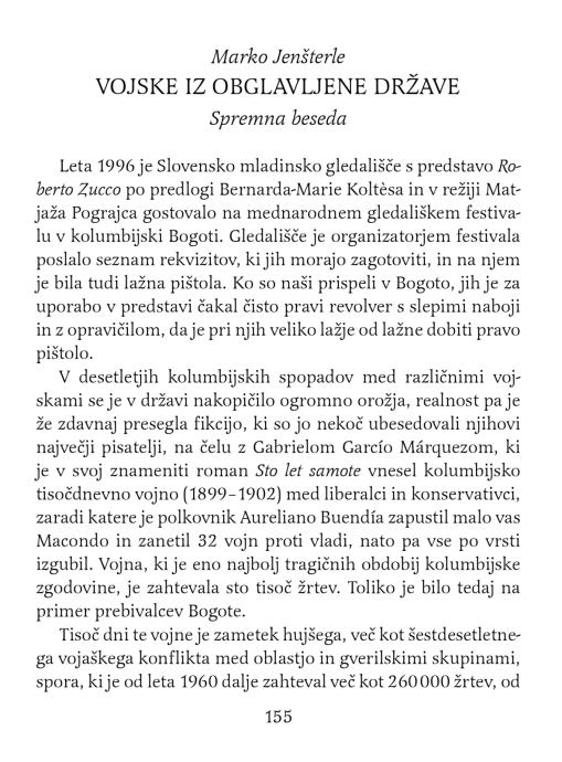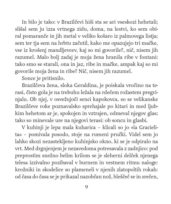 Na začetku romana, ki ga je avtor postavil v 80. leta prejšnjega stoletja, v čas Pabla Escobarja in kolumbijskih mafijskih kartelov, vstopimo v mirni intimni svet glavnega pripovedovalca Ismaela, ostarelega profesorja, ki v kraju San José prebiva s svojo ženo Otilio in si svoje dneve poleg obiranja pomaranč in običajnih priložnostnih pogovorov najraje pestri z motrenjem ženskih teles. Življenje v tem odmaknjenem prerijskem kraju poteka dokaj običajno, a je to zgolj navidezno in ne traja prav dolgo. Z razvojem dogodkov in kasnejšimi razlagami odnosov spoznavamo nasilno in izprijeno ozadje dogajanj ter izvemo, da je bilo nekaj krajanov tudi že ugrabljenih in da ugrabitelji zanje zahtevajo nezamisljivo visoke odkupnine. Med ljudmi veje vse večji strah in čedalje več se jih odloča kraj za vedno zapustiti. Črni trenutek v življenju kraja, ki ga do takrat prebivalci San Joséja še niso izkusili, čeprav so vedeli, da se to v državi pogosto dogaja, pa se zgodi v nenadnem nepričakovanem krvavem spopadu vojsk, za katere niti ne uspejo ugotoviti, katerim interesom pripadajo oziroma kdo je tisti, ki v danem trenutku nad njimi izvaja neposredno nasilje. Iz nedolžnega začetka romana nas avtor, ki je mednarodno slavo dosegel prav s tem delom, v katerem je odlično predstavil umazano politično skorumpiranost Kolumbije, na ta način vodi v prikaz popolnega razpada posameznika in celotne družbe, ki se sooča z vojno, v kateri se moralnosti odpovedujejo celo tisti, ki nanjo najbolj prisegajo. Mir zamenja strah, erotiko posilstva in življenje smrt. Posamezniki so razčlovečeni, norost je neizbežno dejstvo. Živi niso več zares živi, kar velja za posameznike pa v enaki meri velja tudi za celotno državo. Tragedijo kraja je pisatelj v romanu prepletel z osebno tragedijo pripovedovalca, ki v enem od spopadov izgubi tudi svojo ženo, pisava pa je enako prepričljiva tako v opisovanju Ismaelovih osebnih bojev in procesa razpadanja njegovega lastnega jaza v norost in pozabo kot tudi v opisovanju ostalih usod in prikazovanju razkroja kraja v mesto duhov. Četudi s kolumbijskim ozadjem in natančnim prikazom vsakdana države v nenehni državljanski vojni roman prerašča v univerzalno podobo posameznikov, neusmiljeno oplazenih z absurdi vojne in povsem nemočnih v svojih individualnih življenjih, kar pisatelj ponazori z veščo fabulativno gradnjo in mojstrskim obvladovanjem pripovedovanja. Roman je bil tudi v strokovni javnosti prepoznan kot literarna mojstrovina in je avtor zanj prejel več mednarodnih nagrad, za odličen prevod v slovenščino pa gre pohvala prevajalki Tini Malič.