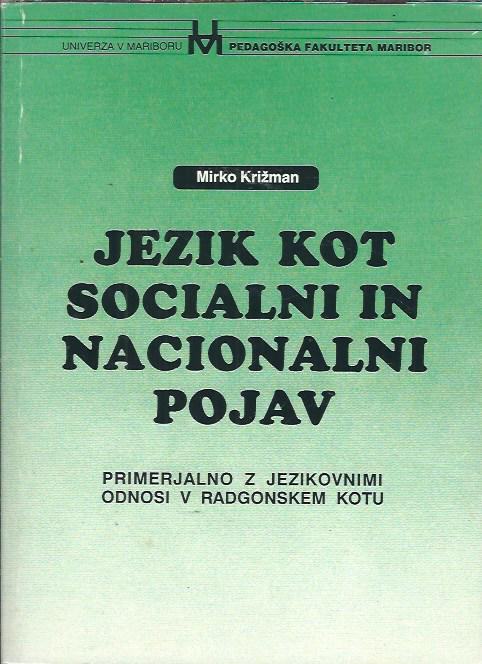 Naslov Jezik kot socialni in nacionalni pojav : primerjalno z jezikovnimi odnosi v Radgonskem kotu / Mirko Križman