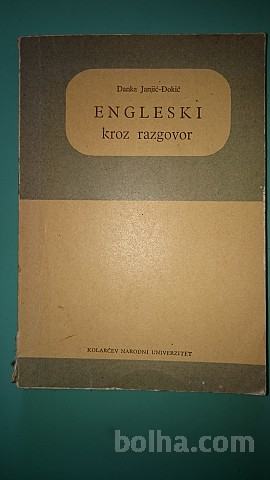 Prodam knjigo ENGLESKI KROZ RAZGOVOR, avtorica Danka Janjić-Đokić. Kolaričev narodni univerzitet, Beograd, 1966, 195 strani. Odlična za prijetno učenje angleškega jezika.