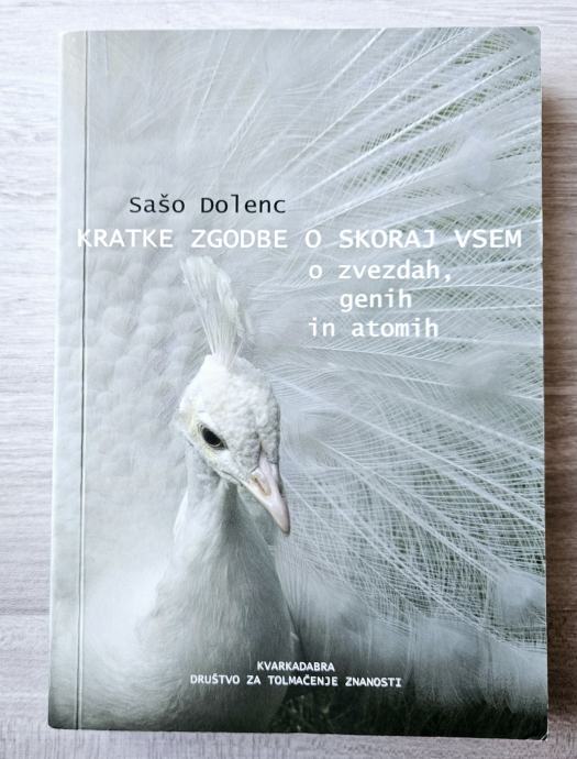 Prodam knjigo KRATKE ZGODBE O SKORAJ VSEM : O ZVEZDAH, GENIH IN ATOMIH, Sašo Dolenc, Kvarkadabra 2008, mehka vezava. 241
