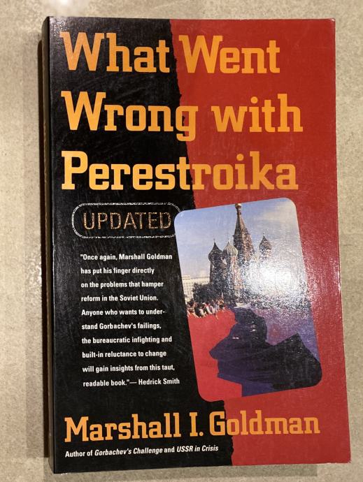 Prodam knjigo WHAT WENT WRONG WITH PERESTROIKA (Updated), v angleškem jeziku, avtor Marshall I. Goldman (ki je napisal tudi USSR in Crisis ter Gorbachev's Challenge - Mihail Sergejevič Gorbačov), s katero je znova pokazal neposredno na težave, ki ovirajo reforme v Sovjetski zvezi.