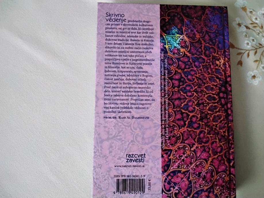 Knjiga slovenske avtorice, branje zahteva kontemplativno naravnanost, osvetljuje miselni in mistični svet dveh velikanov vzhodne, islamske in indijske, duhovne tradicije: Rumija in Kabirja. Slikovito in na oseben način razkriva duhovno-mistični univerzum obeh velikanov ter nas tako počasi, a prepričljivo vpelje v najpomembnejše teme Rumijeve in Kabirjeve poezije in filozofije, kot so um, duša, ljubezen, hrepenenje, spoznanje, notranja glasba, združitev z bogom, čistost značaja, duhovni učitelj, resničnost in iluzija, življenje in smrt.