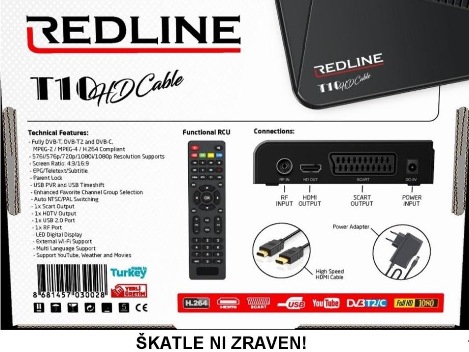 BREZ DALJINCA (na sami napravi ni nobenega gumba - daljinec je nujen), HD/SD DVB-T/T2 sprejemnik za sprejem zemeljskih TV digitalnih kanalov.