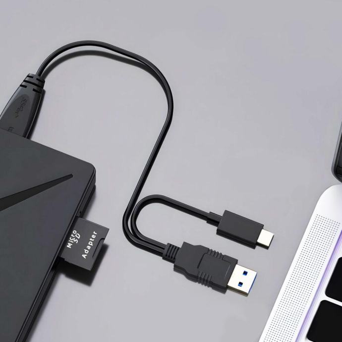 Z veseljem predstavljamo naš 4-v-1 prenosni zunanji pogon CD in DVD zapisovalnik USB 3.0 čitalec SD – vse-v-enem rešitev za vaše potrebe po shranjevanju in dostopu do podatkov v gibanju. Ta vsestranski zunanji pogon združuje funkcije CD in DVD zapisovalnika ter čitalca SD kartic, kar vam omogoča, da enostavno zapisujete, predvajate in shranjujete podatke kjerkoli že ste.