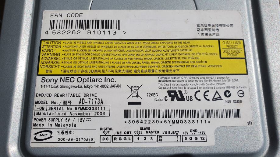 Zapisovalnik Sony Nec Optiarc AD-7173A - DVD±RW (±R DL) DVD-RAM - ATA