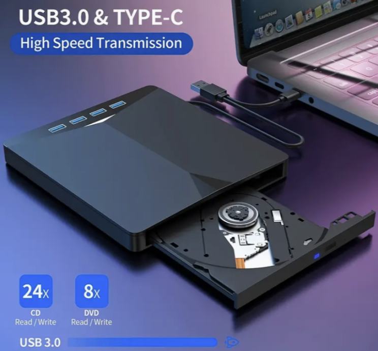 Prodam nov, nerabljen, 7 v 1, USB3.0 in USB-C prenosni pogon CD/DVD: Zapiši, predvajaj, združljiv z vsemi operacijskimi sistemi za prenosnike/namizne računalnike/PC/Mac! Priložena original embalaža in navodila za uporabo.