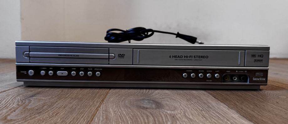 DVD player preizkušeno dela, VHS Recorder pa mečka magnetni trak.