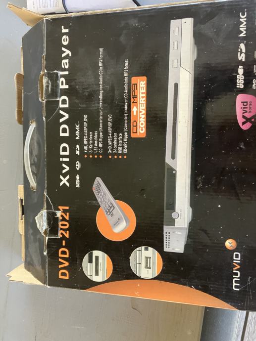 XviD DVD 2021 DVD player. z daljincem, cd v MP3 konverter, USB priključek in še nekaj drugih funkcij skupaj s scart kablom, vse piše na embalaži