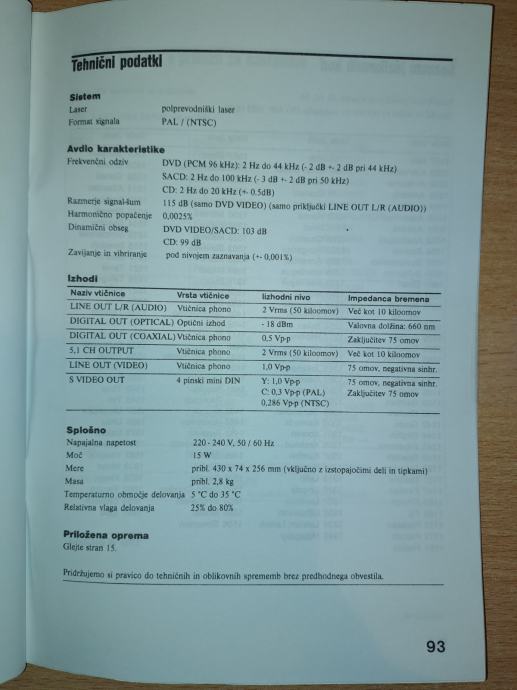 V ponudbo sta vključena tudi delujoč daljinec in originalna navodila v slovenščini.