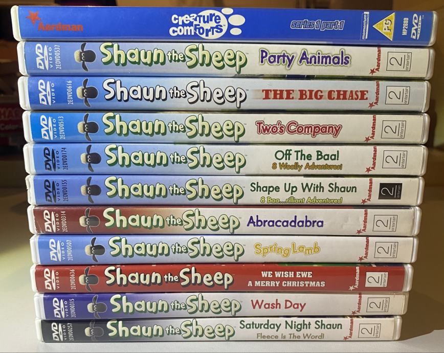 Prodam komplet originalnih risank Bacek Jon (Shaun The Sheep). V kompletu je 10 DVD-jev, dodam še en DVD istega avtorja.