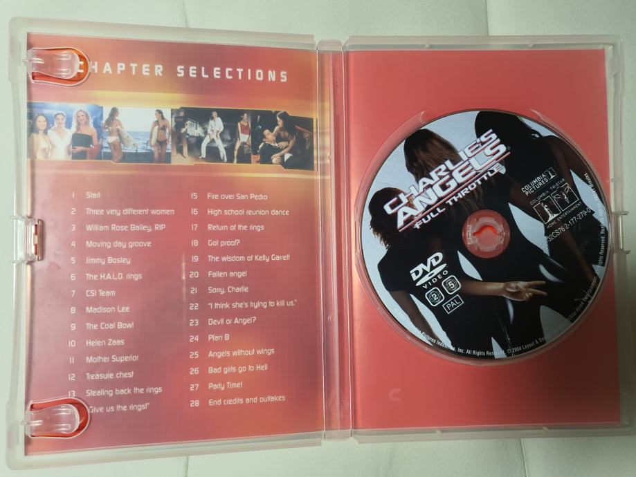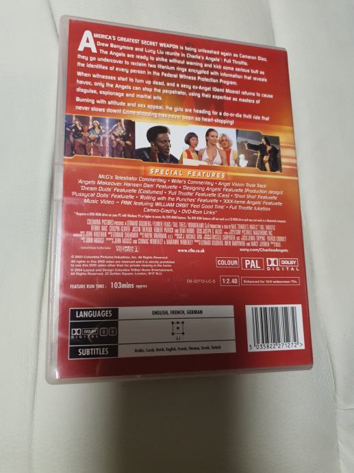 Film Čarlijevi angelčki na dvdju nima Slovenskih podnapisov, ima pa vse posebne dodatke (glej sliko 2) na dvoslojnem dvdju, zato je primeren za zbiratelje. Dvd plošček je brez prask.