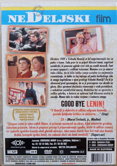 Prodam odlično ohranjen DVD Zbogom Lenin. Je kot nov, brez prask, delujoč.