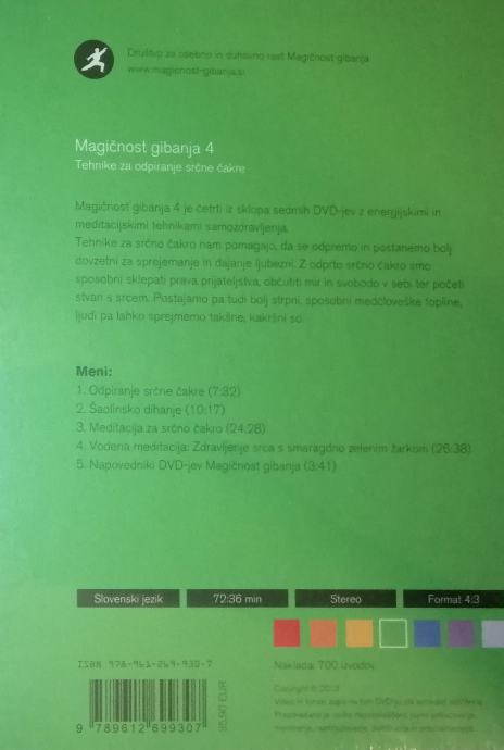 2. Magičnost gibanja 4 - Tehnike za odpiranje srčne čakre (dovzetnost za sprejemanje in dajanje ljubezni, strpnost in sposobnost medčloveške topline), knjiga + DVD, 2012
