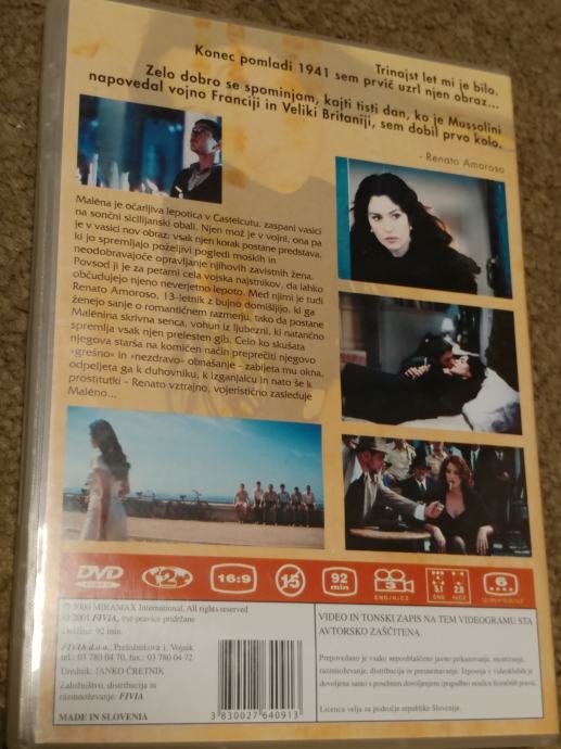 DVD Malena (Giuseppe Tornatore, Italija, 2000)