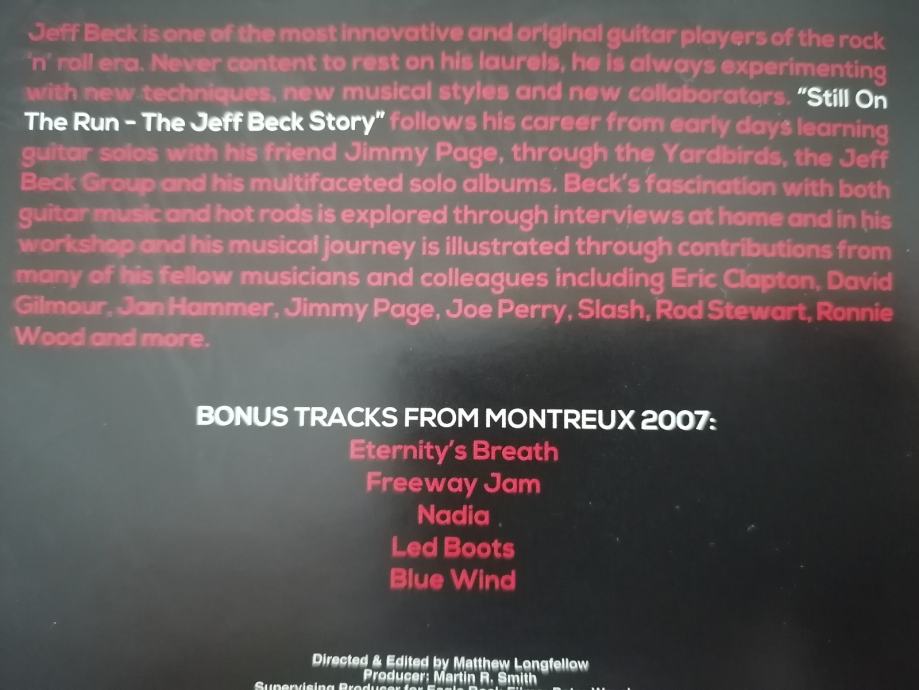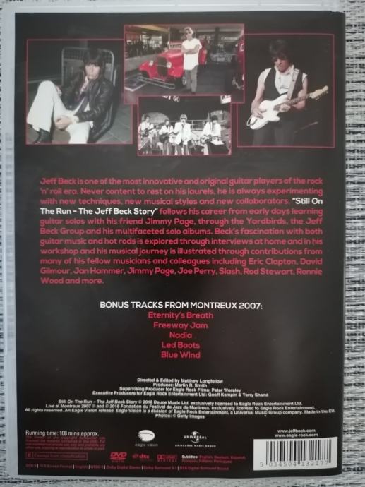 Prodam DVD, po mojem skromnem mnenju, enega najboljših kitaristov vseh časov. Izjemno zanimiva biografska zgodba razkriva ozadje Jeff-ovega razvoja kot glasbenika in vzporedno ponazarja njegove druge preokupacije, ki ga definirajo kot enega najbolj zanimivih umetnikov v sodobni rock glasbi. Poleg dokumentarnega filmskega materiala je na ploščku prikazan še njegov nastop v živo z eno zadnjih zasedb, ki ga je spremljala na nastopih. Tako v filmu, še bolj pa na nastopu, lahko začutimo Beck-ovo neverjetno virtuoznost in predanost inštrumentu s šestimi strunami.